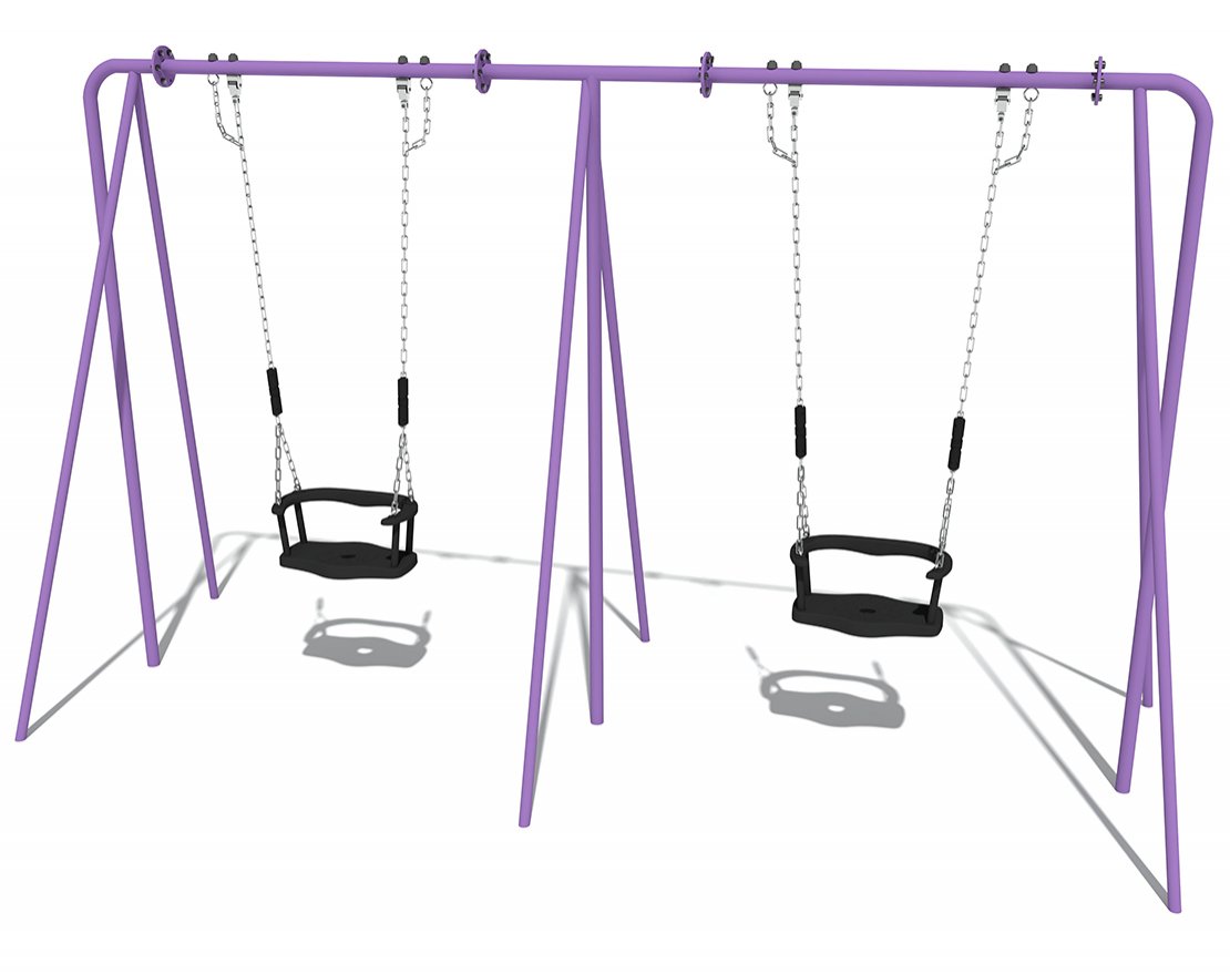 Стойка качели из трубы сечением Ø 42 мм и 32 мм, металл имеет плавные радиусы, тщательную обработку швов, покрыт порошковой краской. Подвес из металлической цепи диаметром не менее 5 мм. Сиденья качелей изготовлены из влагостойкой окрашенной фанеры толщиной 18 мм. Каркас из трубы сечением Ø 22 мм. Деревянные детали должны быть тщательно отшлифованы, загрунтованы и окрашены профессиональными двухкомпонентными красками в заводских условиях.