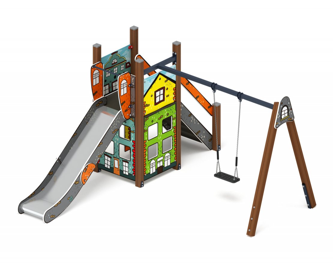 Комплекс «Сказка» станет отличным дополнением для детских площадок и подарит детям радость и веселье на свежем воздухе.