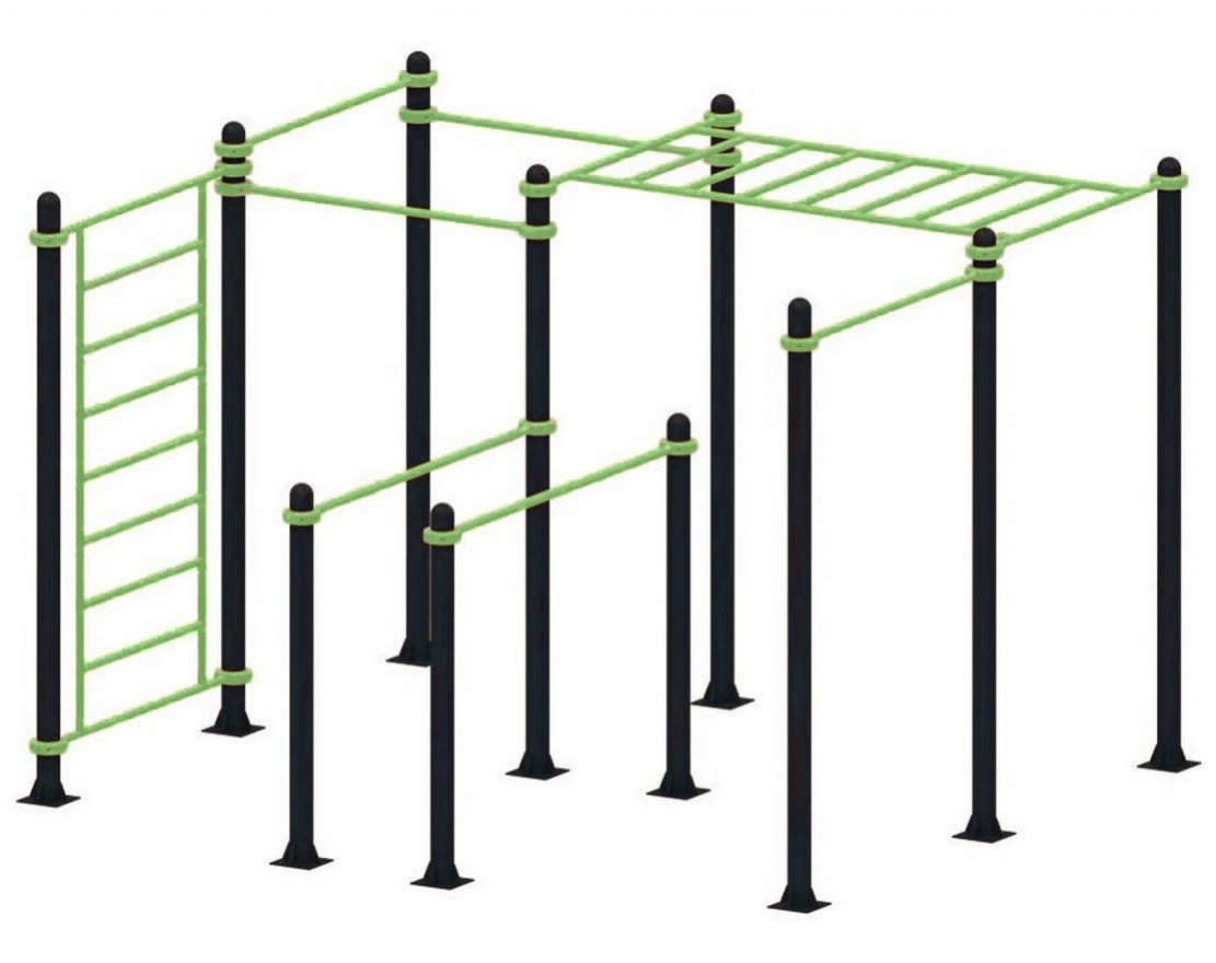 Комплекс для воркаута — это набор разноуровневых спортивных снарядов, который включает в себя уличный турник с регулируемой высотой перекладины, брусья, рукоход и шведскую стенку. Этот комплекс позволяет выполнять разнообразные упражнения для поддержания физической формы и развития силы и выносливости.