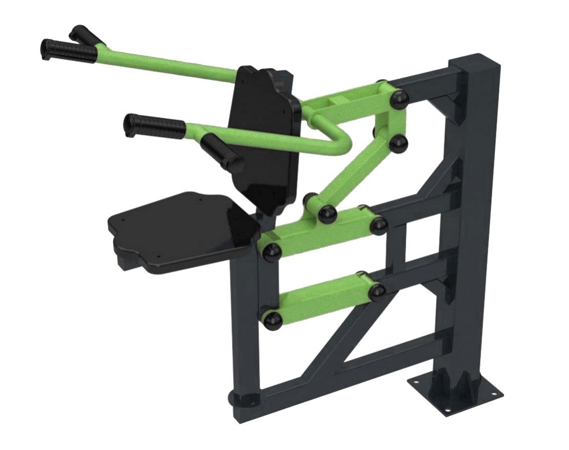 Этот тренажёр изготовлен из прочной стали и оснащён подвижной рычажной системой, что обеспечивает его долговечность и надёжность. Он предназначен для тренировки одного пользователя и развивает мышцы спины, плеч и рук. Тренажёр оснащён сиденьем и рифлёными рукоятками из антивандального пластика, а также ручками и ухватами из устойчивого к внешним воздействиям ПВХ.
