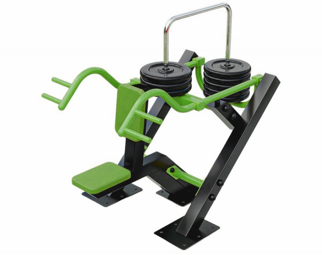 Обивка сидений и спинок выполнена из морозоустойчивого и стойкого к ультрафиолетовому излучению кожзаменителя, а в качестве наполнителя используется пенополиуретан. В местах крепления используются пластиковые заглушки, предотвращающие вандализм, а для подвижных элементов предусмотрены резиновые амортизаторы. Обрезиненные диски в комплект не входят, но возможна дополнительная комплектация дисками массой 5,10,15 или 20 килограмм. Тренажёр устанавливается на подготовленном бетонном основании с помощью анкерного крепления или дополнительных закладных деталей.